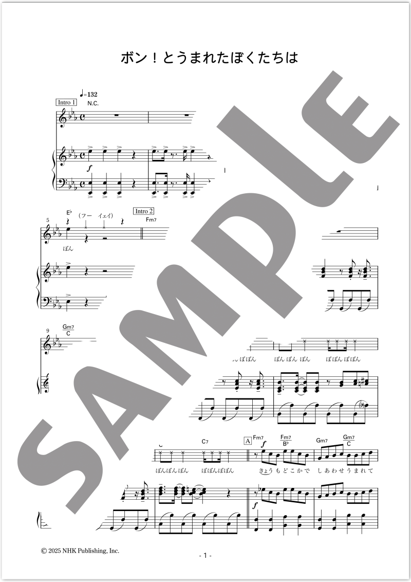 おかあさんといっしょ 2025年8月のうた「ボン!とうまれたぼくたちは」ピアノ楽譜&楽曲配信