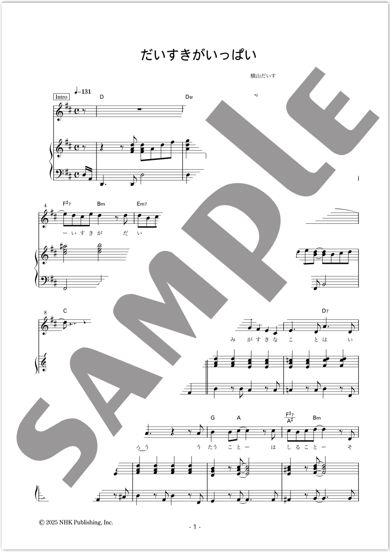おかあさんといっしょ 2025年9月のうた「だいすきがいっぱい」ピアノ楽譜&楽曲配信
